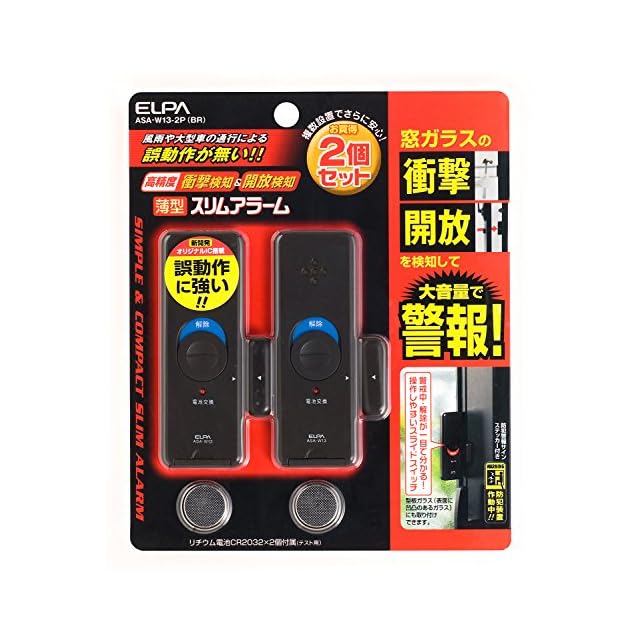 商品名:エルパ(ELPA) 薄型アラームダブル検知2P 防犯 衝撃+マグネット検知式 ASA-W13-2P(BR)