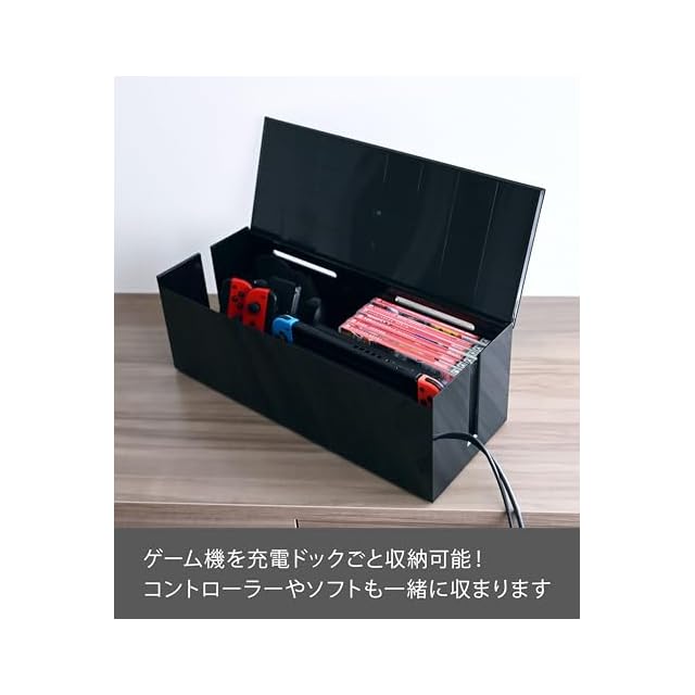 シンプルなデザインで、インテリア性を損ねることなく、散らかりがちなケーブルやケーブルタップ、充電器類を美しく収納できます。