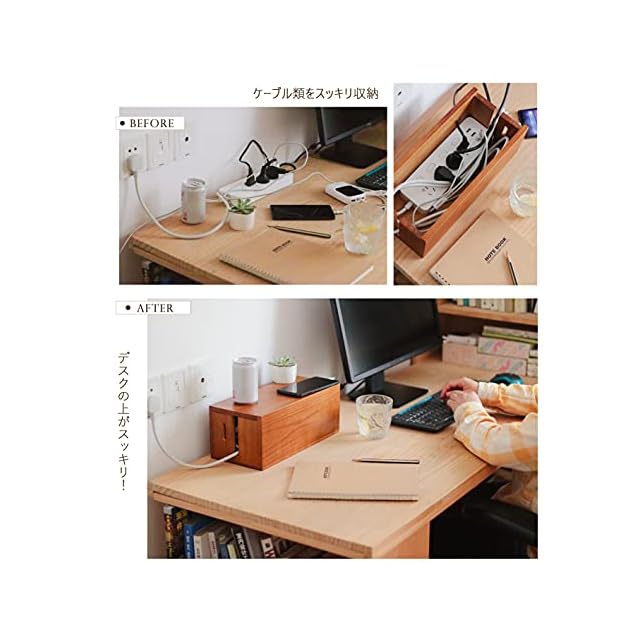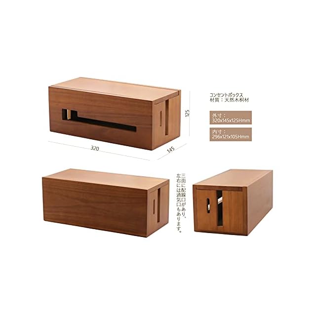 商品名:ケーブルボックス コンセントボックス 配線 コード 隠し ケーブル収納 電源タップ 天然木桐材