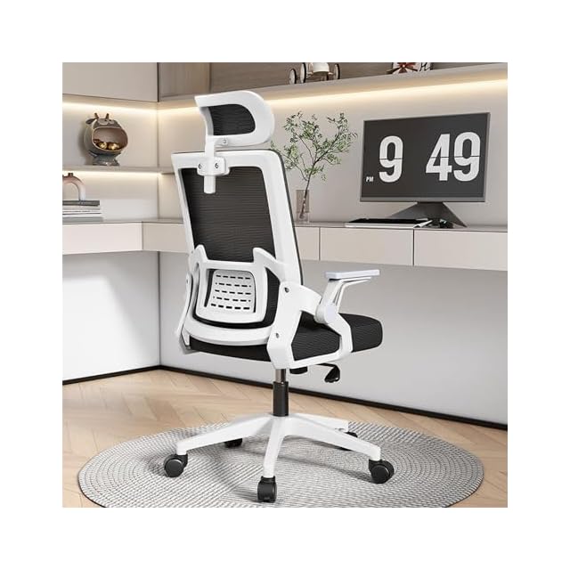 HLIFE オフィスチェア デスクチェア 人間工学 テレワークチェア 疲れない 椅子 腰サポート 跳ね上げ式アームレスト 3Dヘッドレスト ロッキング機能 高反発クッション PCチェア 通気性メッシュ ゲーミング/勉強/事務用 おしゃれ パソコンチェア(ホワイト)