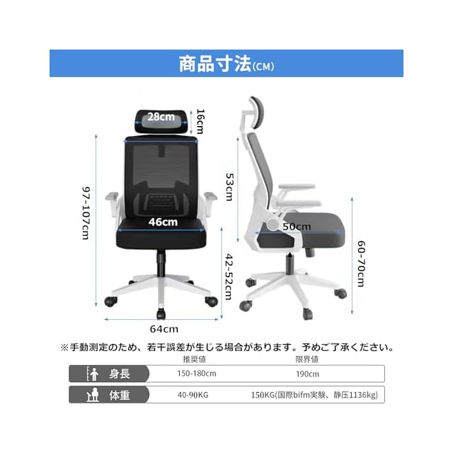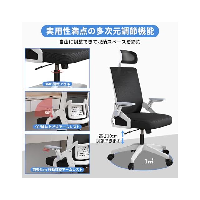【人間工学設計·跳ね上げ式アームレスト】: 人間工学の概念に基づき、椅子はS型背もたれ設計を採用し、人体の曲線に一致する設計と同時に、全体の力点を有する。背骨をしっかりにサポートできて、座りっぱなしの腰に強い負担をかけず、安心して作業や勉強できます。アームレストは前後6CM調整と90度回転できるように設計されているため、使わないときはアームレストを引き上げて、どのデスクの高さにもすっきりと収納できるので、部屋のスペースを有効に活用できます!部屋、書斎、オフィス、会議室、応接室など幅広く利用可能なデスクチェアです。