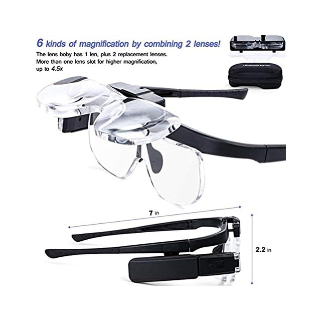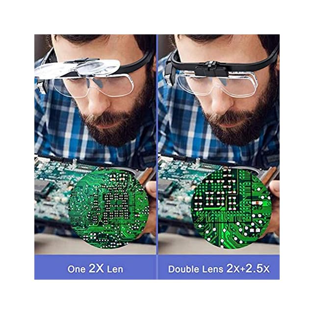 【二重レンズ付き】:軽量のアクリル製レンズを採用し、作業用途に応じて倍率の変更が可能。拡大倍率は2.0倍、二重レンズ使うと2.0倍+2.5倍可能、精密機器の組み立て、手芸などにもご使用頂けます。