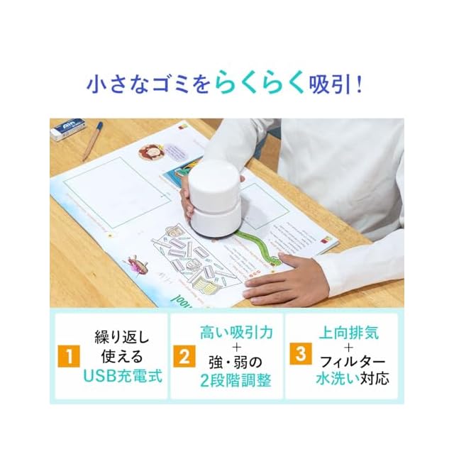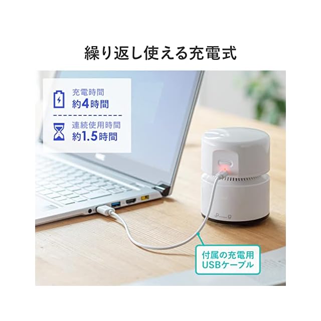 商品名:サンワダイレクト 卓上クリーナー 充電式 消しカス 強・弱2段階 隙間ノズル付き 200-CD070
