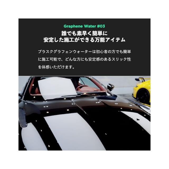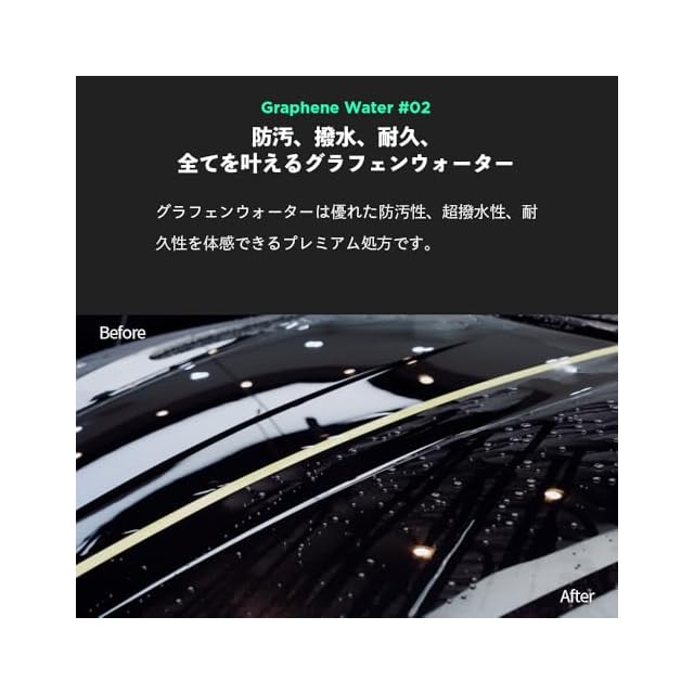 【商品概要】コーティング史上、最高の光沢。グラフェンとSiO2を基盤に塗装に優れた光沢と持続力はもちろん、優れた汚れ防止と撥水力が期待できる製品です。