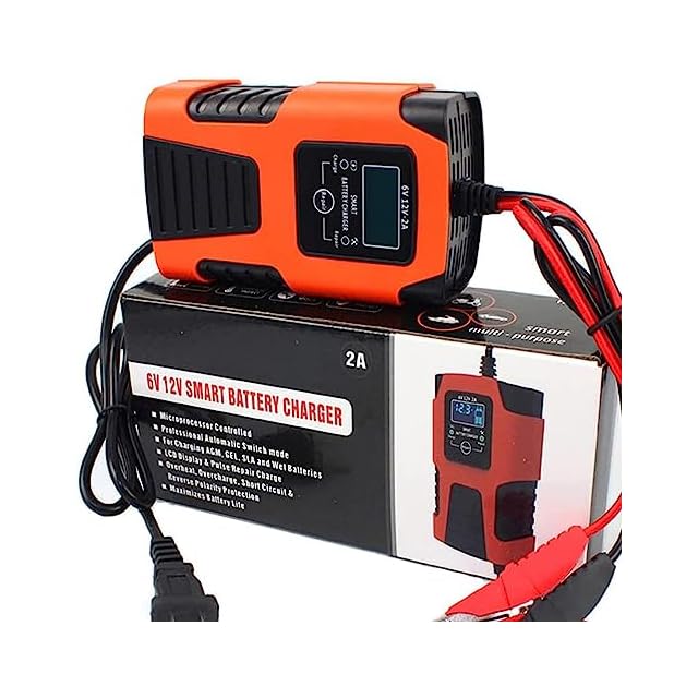 AUTOWHD 6Vと12V用バッテリー充電器 全自動バッテリーチャージャー 修復機能 パルス充電 メンテナンス充電 2A充電 4-40Ah用 自動車&バイク用