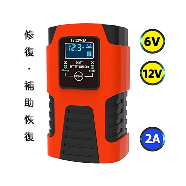 ★2A充電電流★:大きい充電電流ではなく、長期間に使っていないバッテリーに恢復補助充電として大変おすすめします。(電圧低下したバッテリーには、まずは小電流で充電して一定程度充電してから大きい充電電流で充電するとバッテリーによいとの使用手順)
