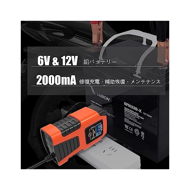 ★6Vと12V適合★:6Vバッテリーも12Vバッテリーも利用できて、設定不要、自動的にバッテリーの電圧を識別、バイク、オートバイク、自動車、おもちゃの玩具、草剃り機等のAGM、GEL、密閉型、開放型の鉛バッテリーは使用できます。