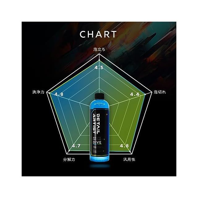 商品名:【DETAIL ARTIST】 DIVE 『アルカリ成分が有機汚れ、虫、鳥糞に効果的』アルカリ性 カーシャンプー 大容量 500ml 洗車 アクアマリンの香り ディテールアーティスト ダイブ