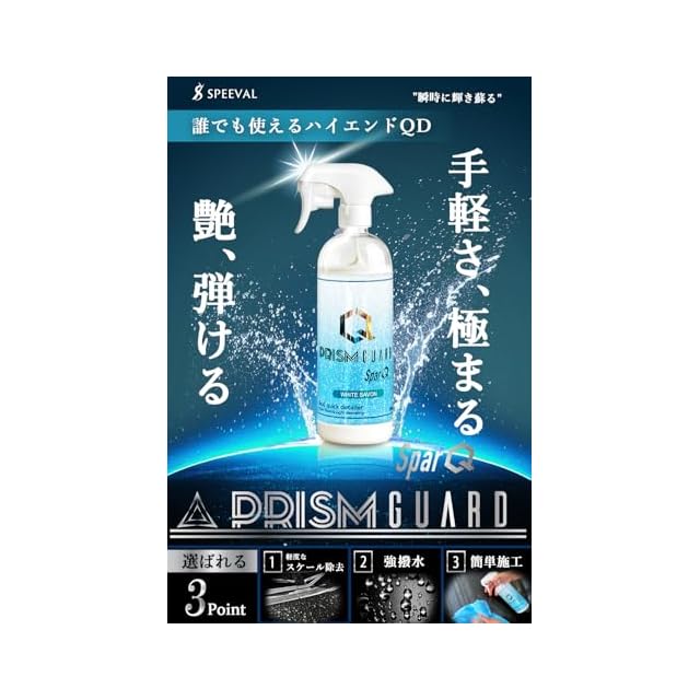 SPEEVAL Prism Guard SparQ スパーク【瞬時に、輝きが蘇る】 クイックディテーラー ホワイトサボンの香り 汚れ除去 水垢落とし フッ化物不使用 撥水 艶出し 簡単施工 酸性 大容量 500ml | つむぎ屋