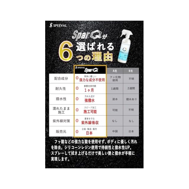 商品名:SPEEVAL Prism Guard SparQ スパーク【瞬時に、輝きが蘇る】 クイックディテーラー ホワイトサボンの香り 汚れ除去 水垢落とし フッ化物不使用 撥水 艶出し 簡単施工 酸性 大容量 500ml