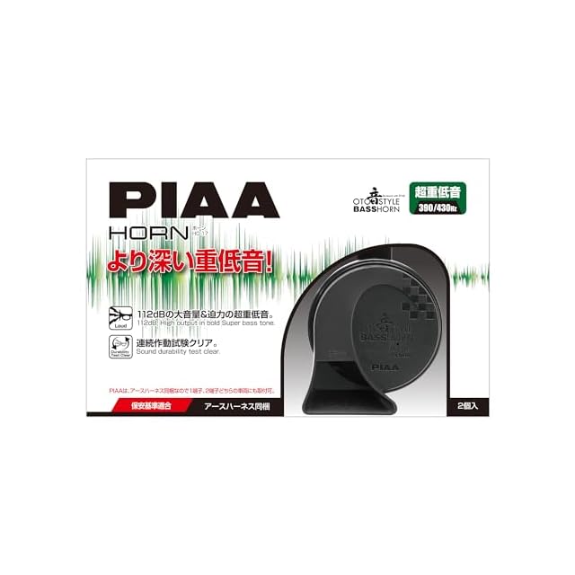 商品名:PIAA(ピア) 車用 ホーン 390Hz+430Hz BASS HORN 112dB 2個入 超重低音 渦巻型 高級セダンサウンド 保安基準適合 HO-17