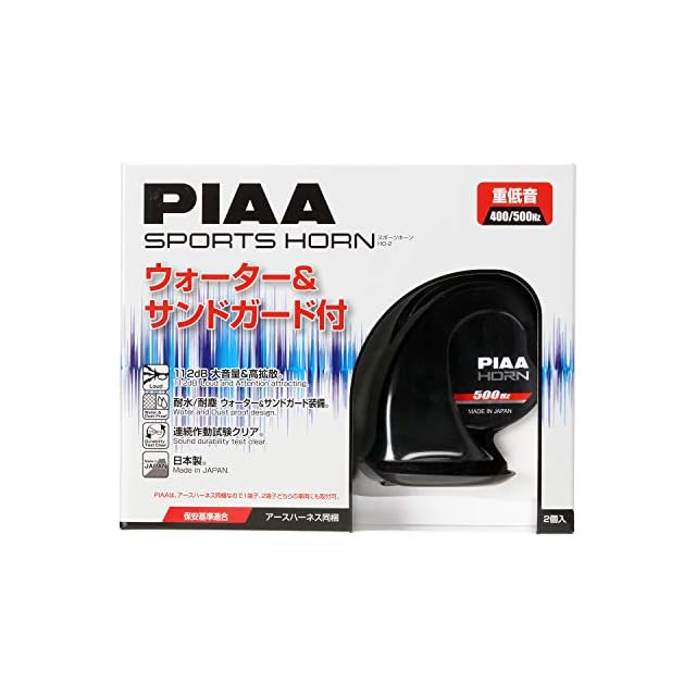 商品名:PIAA(ピア) ホーン 400Hz+500Hz スポーツホーン 112dB 2個入 渦巻き型 車検対応 アースハーネス同梱 HO-2
