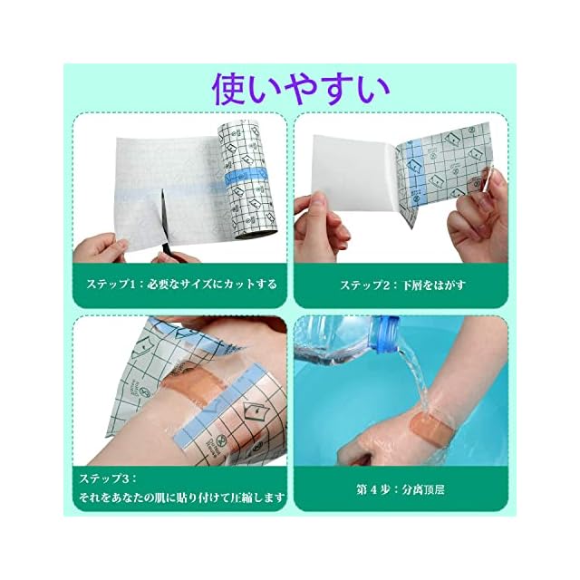 商品名:防水フィルムロール - シャワーシールド - フィルム - 滅菌滅菌 創傷 被覆 材 - 使い捨て透明フィルムロール粘着テープ(20cm x 10m)