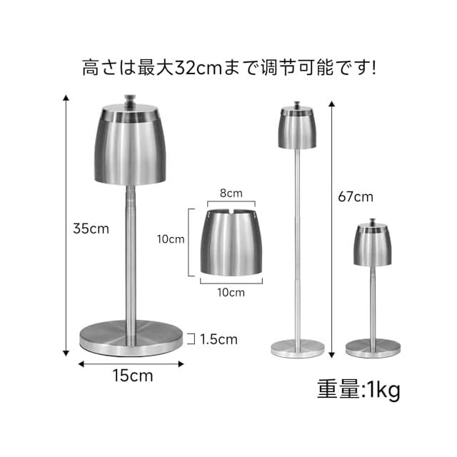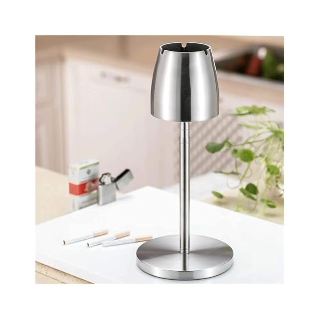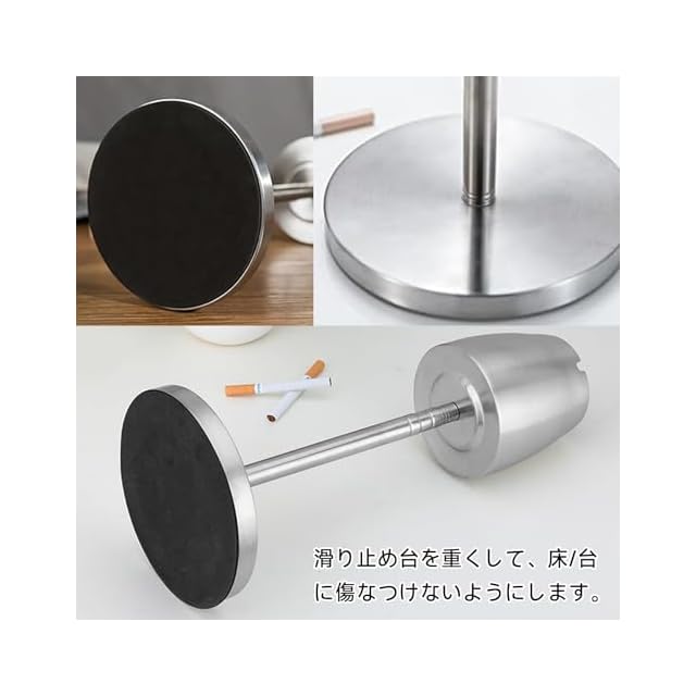 【高さ調節可能】灰皿はサイズ:10cm*10.2cm*8cm があります。自由に高さ調節できる「伸縮灰皿スタンド」です。約35cmー67cmに高さ調整可能ですので、お好みの高さに調整できます。本体部には3か所「U字」状のタバコかけ用の溝がありますので、タバコが転がってしまうこともなく置きやすいです。いっぱいになっても気密性があるので臭い漏れも気になりません。