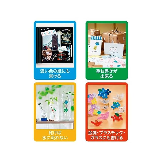 インク色:紫、桃、赤、橙、山吹、水色、緑、黄緑、黄、うすだいだい、青、茶、白、灰、黒