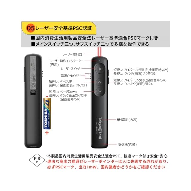 商品名:【TokyoTomi】レーザーポインター ワイヤレスプレゼンター 国内正規品 電池付き Windows &Mac対応 ドライバーインストール不要 2024製品