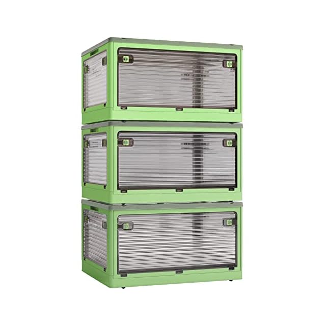 【折り畳み▪上に蓋/側面扉付き】収納箱界の大革新!使わない時に折りたたんで収納できます。スペースを取りません。側面四面も扉付き、収納にとても便利です。上にふた付き、物を入れやすい。蓋をロックできます。物を取るは側面扉から、ボックスを積み重ねる状態にも楽に物を取り出して、伝統的な収納ボックスに比べてもっと便利で、機能性が向上します。