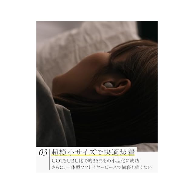 【一体型ソフトイヤーピースによる快適な装着感】作品の世界に深く没入するには、圧迫感の少ない快適な装着感が重要です。本製品は、片側約3gの「超軽量&極小筐体」を新採用し、さらにイヤホン本体までもシリコンで覆う「一体型ソフトイヤーピース」を新設計することで、圧迫感ゼロの理想的な装着感を実現。枕やクッションで耳を圧迫しても異物感をほとんど感じません。