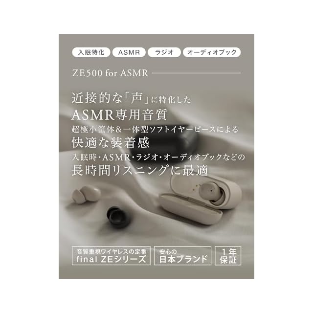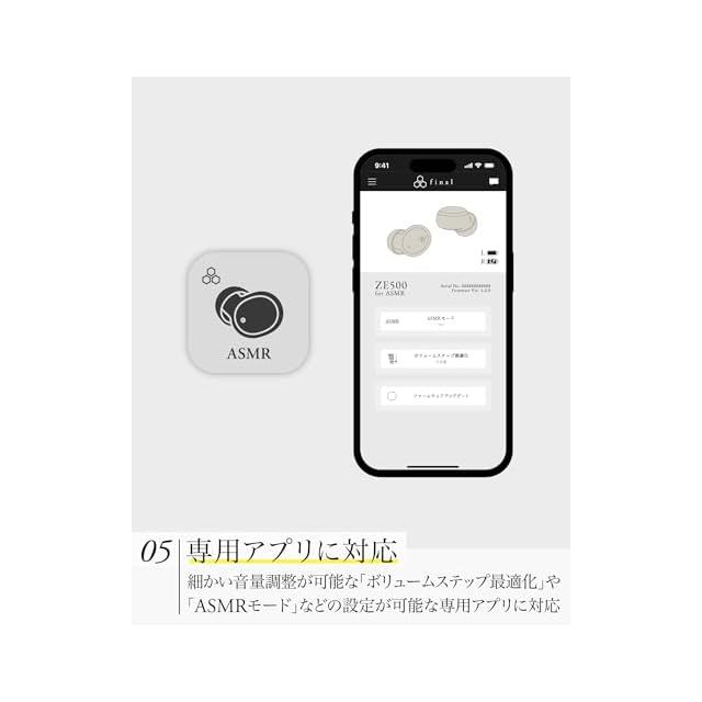 【ASMR作品に最適化された新たな音質設計】finalエンジニアによる最新の音響工学及び音響心理学の研究成果により「超近接音場」に特化した新たなASMR専用の音質を開発。耳元近くに音像が定位することで、まるで自身がダミーヘッドマイクに入り込んだような臨場感を得ることが可能です。