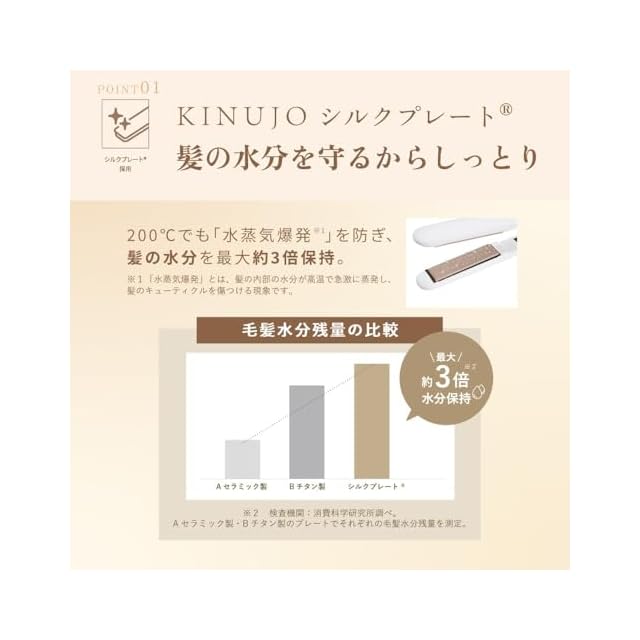 200℃の高温状態で水をかけてもすぐに蒸発しない保湿力があり、髪を傷めたくないけれど、ヘアアイロンを毎日使いたい人に最適なプレートが「シルクプレート」です。