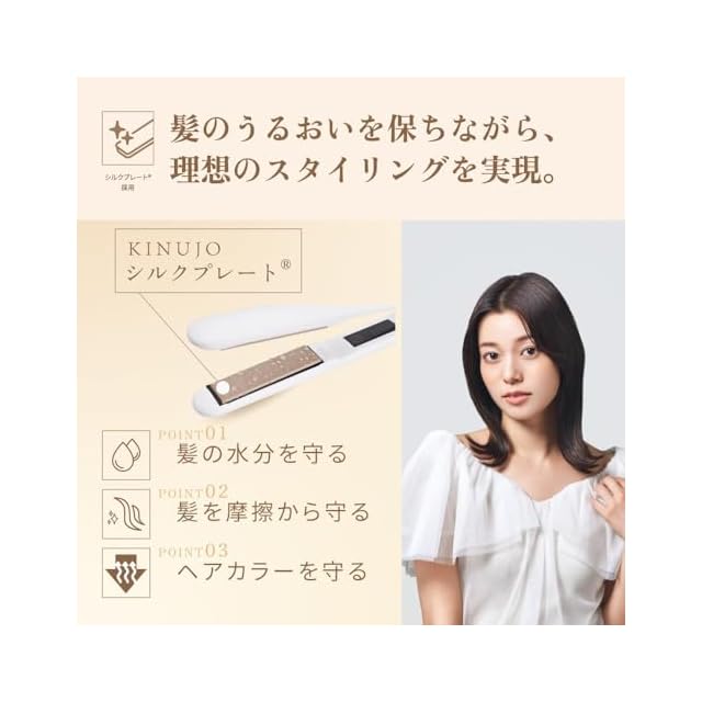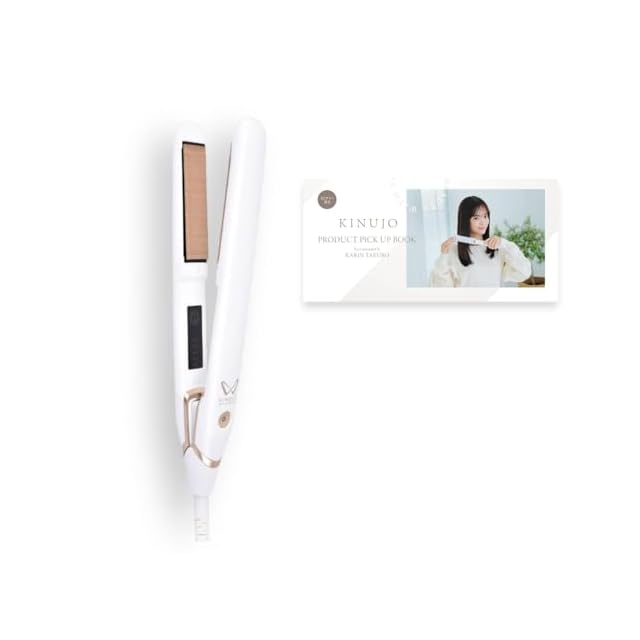 【公式EC限定 コラボガイドブック付き】KINUJO 絹女 ワールド ヘアアイロン ブラック シルクプレート®で叶えるうるツヤストレート 海外対応モデルで旅先でも美しく 5段階温度調節 オートパワーオフ ストレート ヘアケア スタイリング シリコンキャップ付き (ホワイト) | つむぎ屋