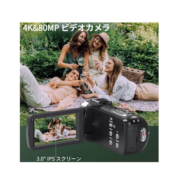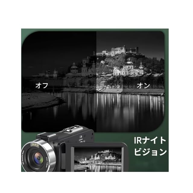 【3.0インチ IPS スクリーン&IRナイトビジョン】4K ビデオカメラの3.0インチのIPS スクリーンは鮮やかな色彩とリアルな画質を再現し、撮影した写真や動画を快適に確認できます。画面を 270度反転して自分の方を向くと、自分の表情や構図を簡単に確認できるため、自撮りにとても便利です。IRナイトビジョンを使用すると、薄暗い環境や暗い環境でも白黒の写真やビデオを撮影できます。たとえば、庭の動物や植物の変化を観察したり、友人に予期せぬサプライズを準備したりできます。