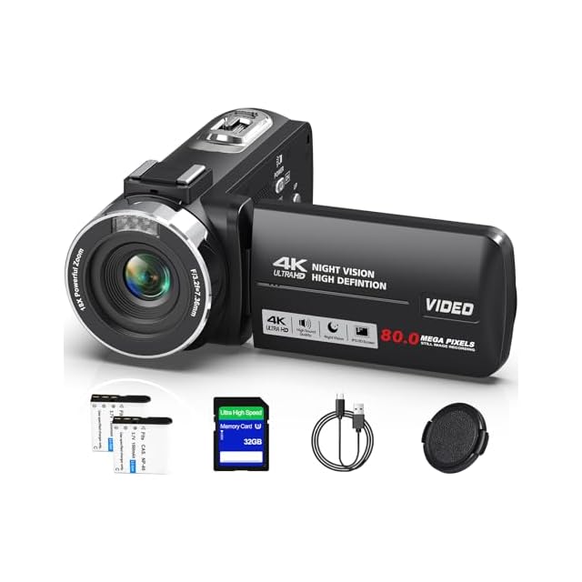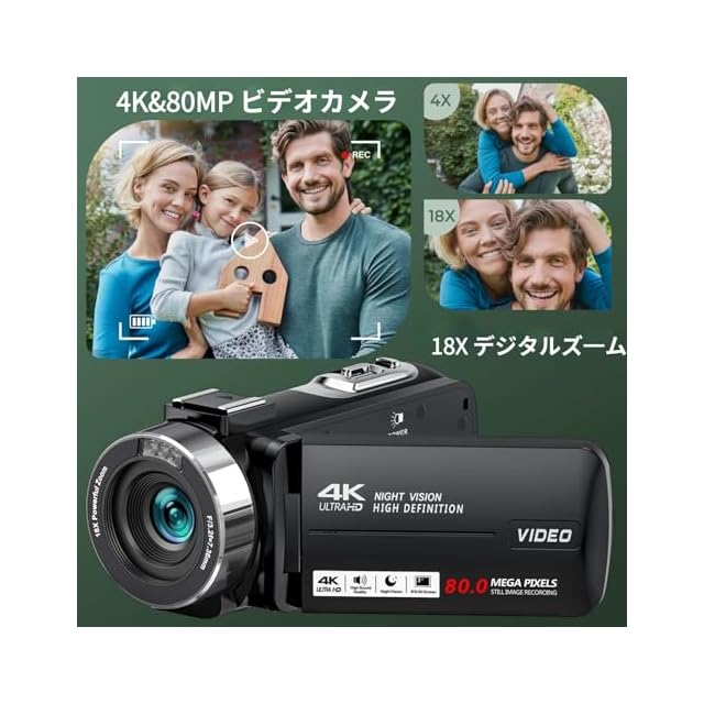 ビデオカメラ 4K録画 8000万画素 YouTubeカメラ 3.0インチIPS HD画面 18倍デジタルズーム IRナイトビジョン 270度回転可能 スクリーン 自撮り 32GBのSDカード 1500mAh電池 付き 6ヶ国語取扱説明書 Vlogging カメラ 軽量 携帯便利 旅行Vlog 卒業式 学生 初心者 セット
