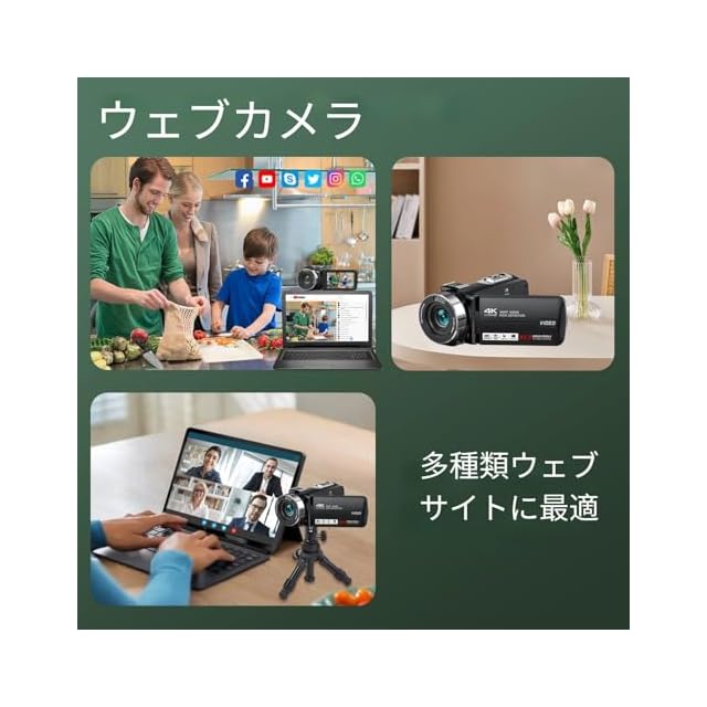 【操作簡単·多機能の4K ビデオカメラ】このビデオカメラ 4Kには、写真や動画を撮影する機能だけでなく、連続撮影、一時停止、スローモーション、多言語対応、タイムラプス動画、ループ録画などの機能も搭載しております。また、ウェブカメラとしても使用可能で、ライブ配信やビデオ通話でも簡単に対応します。ボタン数は少なく、操作は簡単で、写真に興味を持ち始めたばかりの初心者に最適です。このカメラは、YouTube、Facebook、TikTokなどのソーシャルメディアでの配信や通話が簡単にします。初心者にとって間違いなく最も人気のあるカメラです。