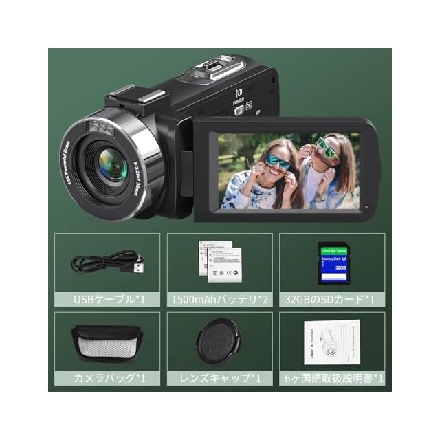 【携帯便利&1年間メーカー·ビデオカメラ】1500mAhバッテリー2個と32GB SDカードが付属しており、大切な瞬間を逃しません。三脚との互換性もあり、旅行やキャンプ中の長時間撮影にも最適です。300 gしかない小型・軽量のビデオカメラなので、ポケットに入れて持ち運びができ、運動会、卒業式、忘年会、旅行など、さまざまな場面で大活躍します!1年間の品質をサポートし、ご質問がございます場合は、お気軽くに「注文履歴」の「出品者に連絡」からご連絡ください。