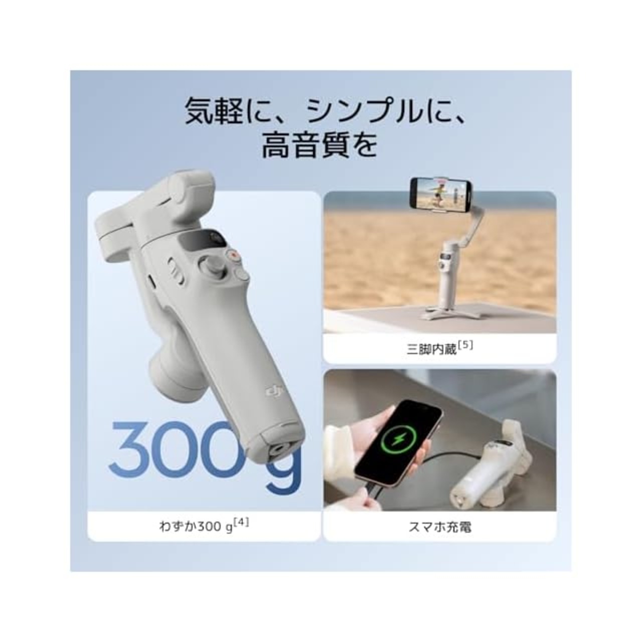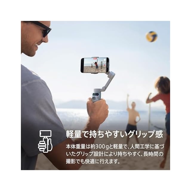 ✅【超軽量&快適なグリップ感】 - わずか300グラム[4]のOsmo Mobile 7は、人間工学に基づいたデザインと滑り止めハンドルを備え、長時間の使用に最適なスマホ用ジンバルです。