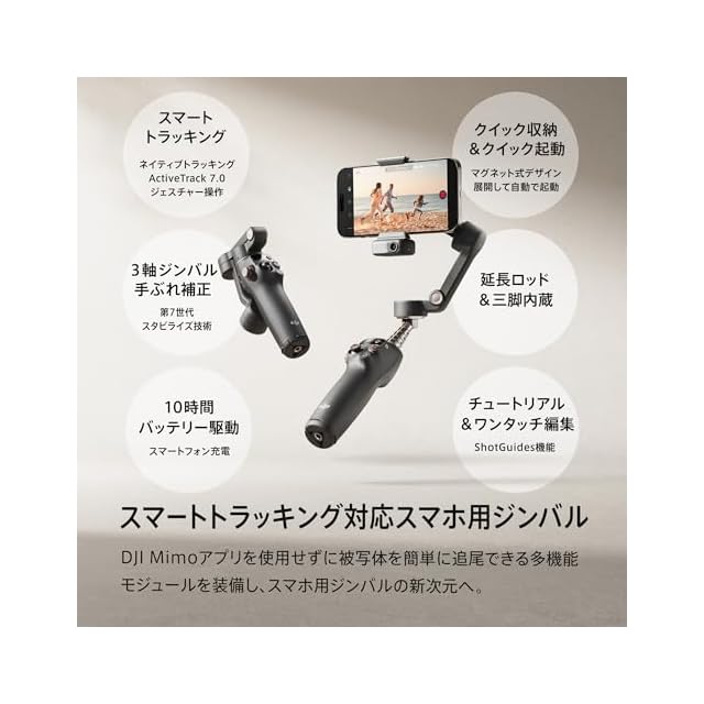 ✅【初日からプロ並みの撮影を】 - Osmo Mobile 7PをDJI Mimoとペアリングし、ShotGuidesとワンタップ編集を利用しましょう。プロのように撮影して編集し、時間を節約しながら創造的な作品を瞬時に洗練させます。