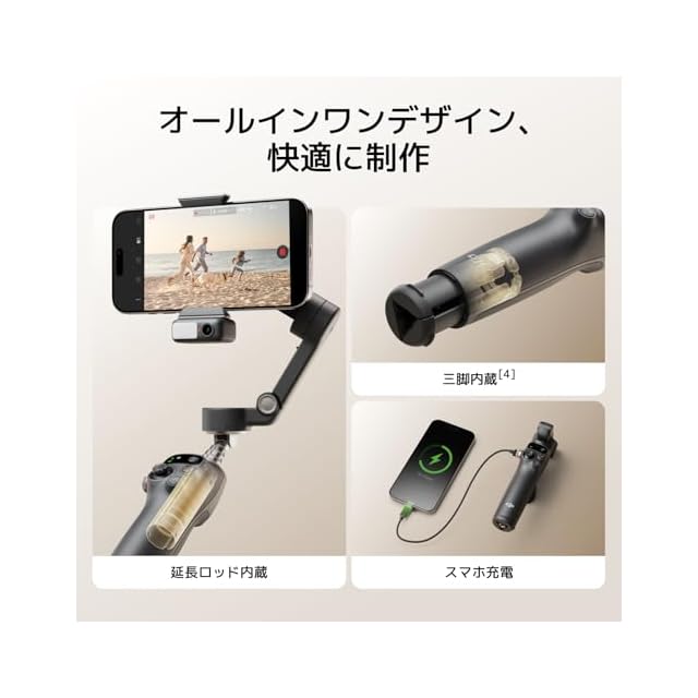 ✅【創造性を効率化】 - Osmo Mobile 7Pの内蔵延長ロッドと三脚[4]により、広角のセルフィーや安定したVlogを簡単に撮影でき、余分な機材の手間なく自由に創造性を発揮できます。