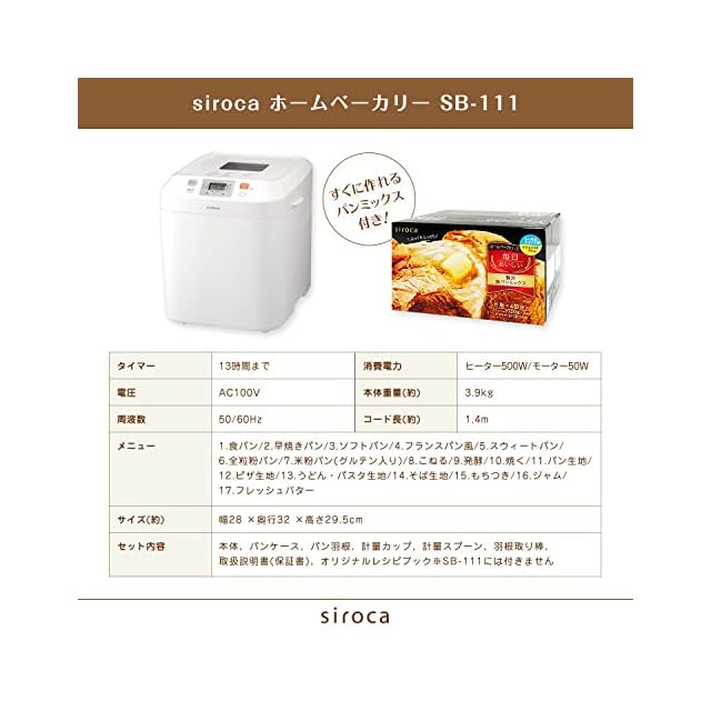 【シロカ公式ストア限定】シロカ ホームベーカリー 全自動 SB-111 餅つき機 もちつき 最大2斤 ジャム バター 蕎麦 うどん + 贅沢食パンミックス (1斤×4袋) SHB-MIX3100付き特別セット