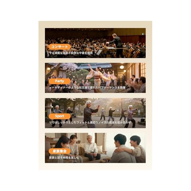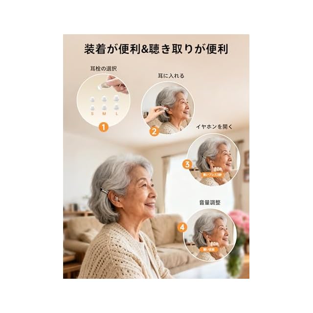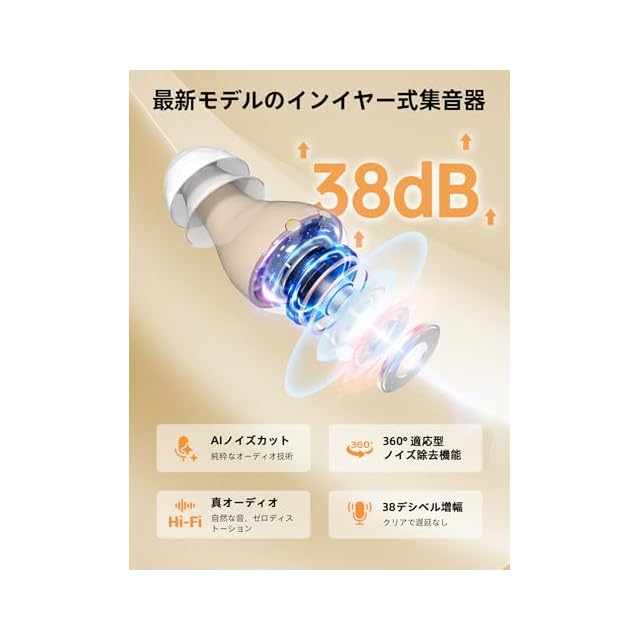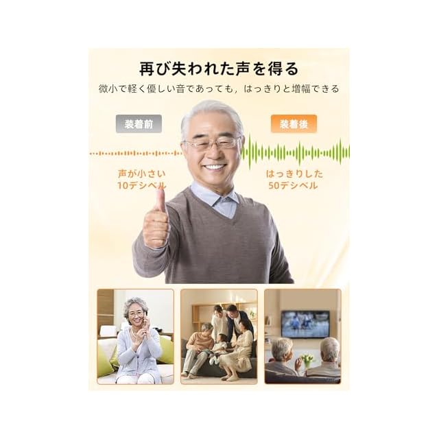 音声増幅: クリアな音質で会話や環境音をしっかりと集音し、快適な聞こえをサポート