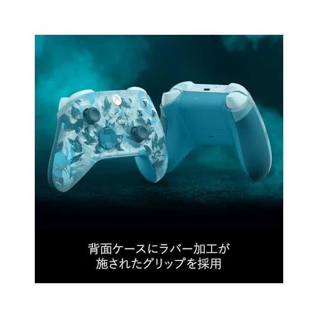 ダイナミックなグリーンを重ねた 1 台ごとに異なる渦巻き模様を特徴とした Xbox ワイヤレス コントローラー (ノクターナル ベイパー) スペシャル エディションで、ライバルを煙に巻こう。最大 40 時間のバッテリー持続時間*。