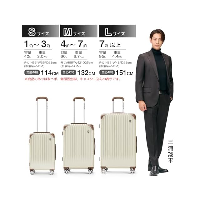【高品質なボディ&信頼のYKKファスナー】ABS樹脂は軽くて弾力性と割れに強く、PC(ポリカーボネート)樹脂は耐衝撃性・断熱材に優れる、両素材を混合した耐久性が高いハードタイプの高品質ボディを実現しています。また、日本が世界に誇るYKKファスナーをメインファスナーに標準装備。ファスナータイプのスーツケースによくあるファスナーの不具合(ファスナー脱線や開き)を解消し、長期にわたり安定した使用感が可能となりました。