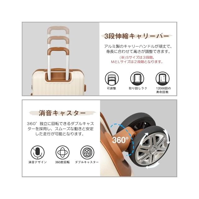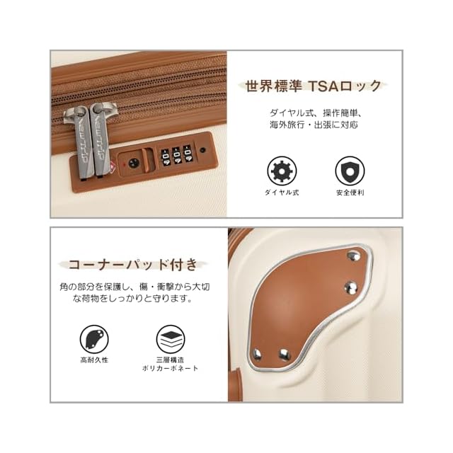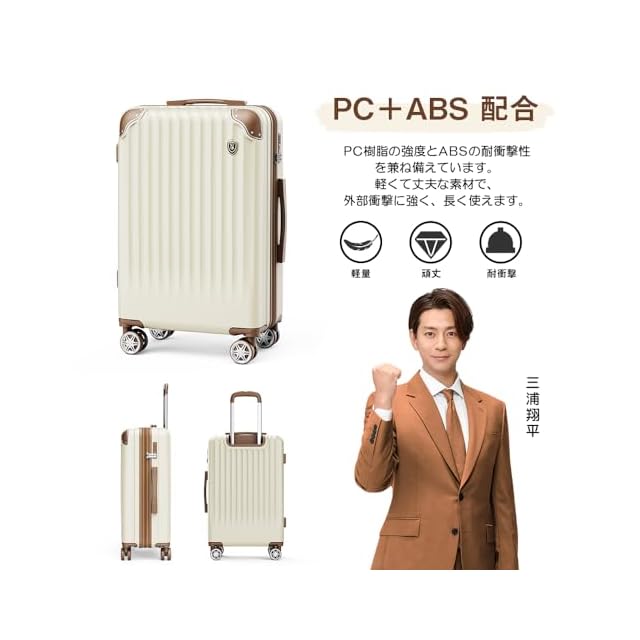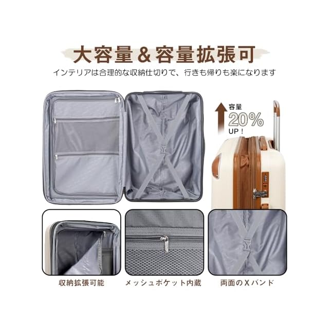 [New Trip] スーツケース キャリーケース 拡張機能付き 機内持ち込み 軽量 大型 S/M/Lサイズ キャリーバッグ 耐衝撃 大容量 ファスナータイプ 静音 ダブルキャスター TSAロック 海外 旅行 ビジネス 出張 (アイボリー、Lサイズ:7泊~長期旅行/95L) | つむぎ屋