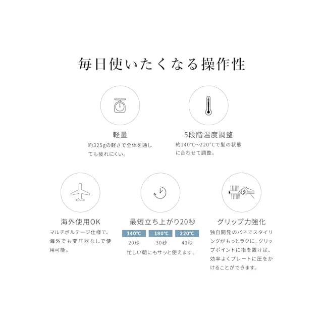 【幅広だからワンストローク時短で簡単ストレート】ワンストロークでスピーディーにうねりを整えることが可能。 同じ毛束に何度もヘアアイロンを通すことなく、忙しい朝でも簡単にストレートスタイルをつくることができます。
