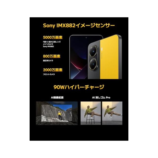 ✅5000万画素のメインカメラ搭載。AIで撮影をもっと気軽に、楽しく。5000万画素のソニーのIMX882センサーを採用し、F値1.5の広い絞り値により光の取り込みが大幅に向上しました。先進的なAI機能も搭載。不要なオブジェクトを削除するAI消しゴムProや、画角を拡げるAI画像拡張も活用することで、写真撮影の新しい楽しさを発見することができます。