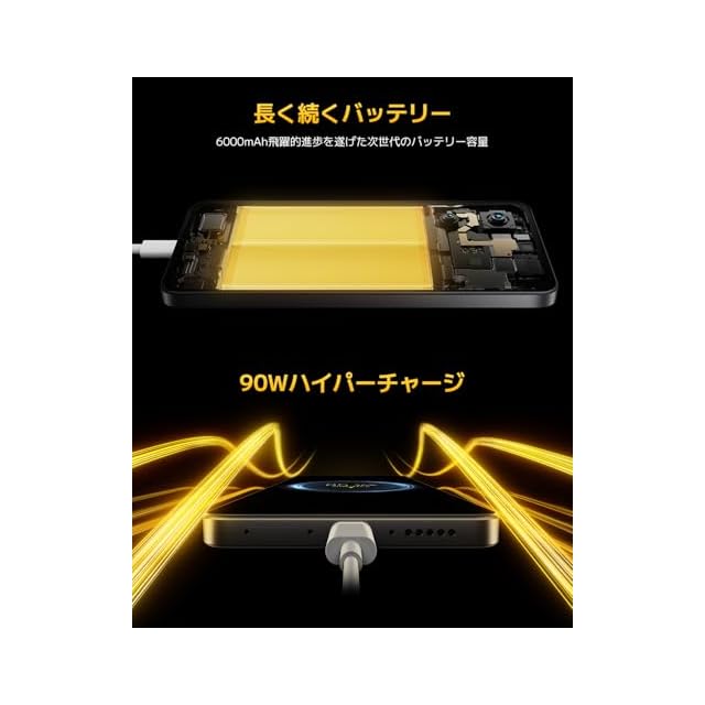 ✅6000mAhの大容量バッテリー&90W急速充電対応。POCO Xシリーズ史上最大の6000mAhのバッテリーをスリムなボディに搭載しました。バッテリーは1600回の充電サイクル後も80%の容量を維持する、長寿命設計。また、90Wハイパーチャージにより、わずか約42分で100%まで急速充電可能です。