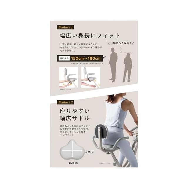 【幅広い身長にフィット】適応身長が約150cm~180cm、上下・前後、細かく調節できるため、あなたにぴったりの姿勢で快適に運動できます。