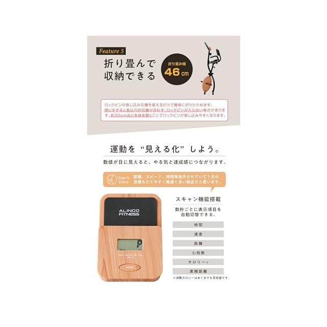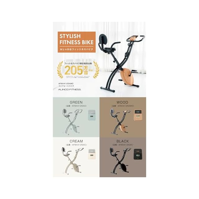 アルインコ(ALINCO) フィットネスバイク エアロバイク 背もたれシート サイドハンドル 幅広い身長に対応 大型サドル 折り畳み 8段階負荷 タブレットトレー付 静音 スキャン機能 心拍数測定 トレーニングバイク AFBX4125AWO ウッド | つむぎ屋