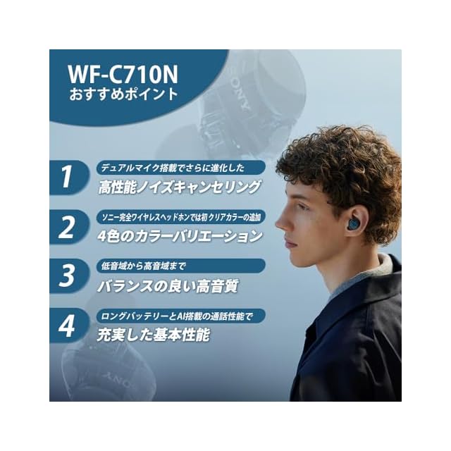 ソニー(SONY) WF-C710N グラスブルー ワイヤレスイヤホン 高性能ノイズキャンセリング Bluetoothロングバッテリー 外音取り込み IPX4防滴性能 軽量 コンパクト マルチポイント接続 | つむぎ屋