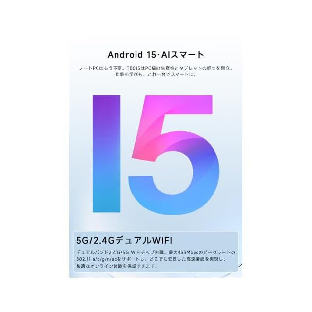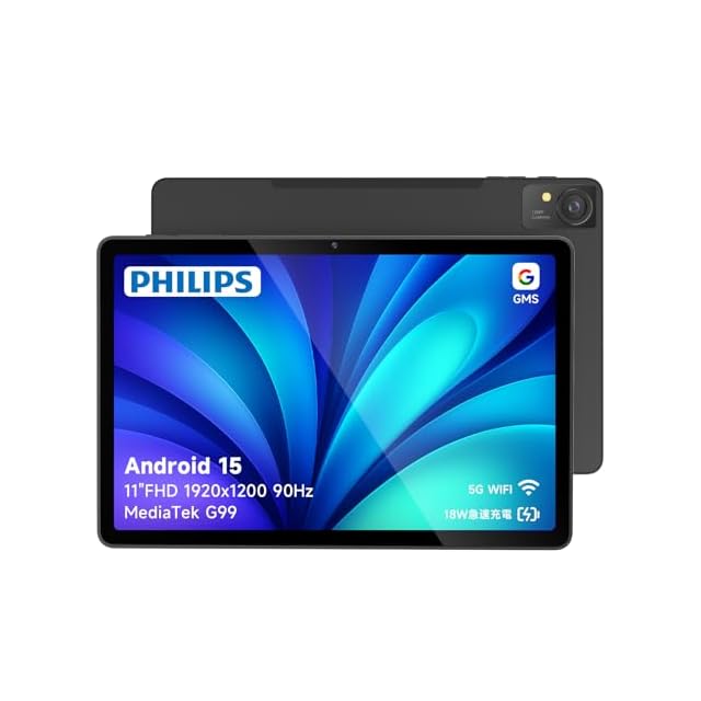 ✅【多機能搭載:Wi-Fi5/無線投影/分割画面】【タブレット Wi-Fiモデル】 【高速5GHz Wi-Fi対応、安定かつスムーズな接続体験】 PHILIPS タブレットはWiFi 5(5GHz)とWiFi 4(2.4GHz)のデュアルバンドに対応し、最大433Mbpsの高速通信が可能。動画視聴・ダウンロード・オンライン学習もストレスなく行えます。 802.11 a/b/g/n/ac 規格に対応し、幅広い環境で安定した接続を実現します。 【ワイヤレス画面ミラーリングにも対応】 PHILIPS タブレット T8015はテレビやプロジェクターへの無線出力が可能で、動画視聴・会議・プレゼンもスムーズ。仕事でもエンタメでも大画面で快適操作が可能です。 【分割画面表示で、マルチタスクも効率的に】こちらの11インチタブレットはアプリの画面分割表示に対応し、動画を見ながらメモを取る、調べながらチャットをするなど、同時操作が快適に。