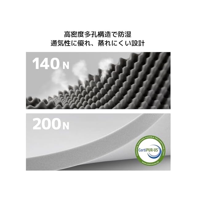 【ご注意・圧縮梱包お届け】※搬入や環境への配慮のため、商品は圧縮または折りたたんだ状態でお届けします。開封時には折り目や歪み、寸法の誤差が生じる場合がありますが、ご使用いただくことで徐々に元の状態に戻ります。※ウレタン素材は直射日光や蛍光灯の光で黄変することがありますが、機能には影響ありません。どうぞ安心してお使いください。※商品到着後は、速やかに開封してください。【商品仕様】●サイズ:幅140cm×奥行195cm×高さ10cm ●重量:約8.2kg ●硬さ:200N(ニュートン)+140N(ニュートン)●材質:中材/高反発ウレタンフォーム ●カバー表生地/ポリエステル100%【1枚敷くだけで寝心地が格段に向上し、快適な眠りへと導くトッパー】今お使いの寝具の上に重ねてもOK、そのまま床に敷いてもOK!さまざまなシーンでご活用。