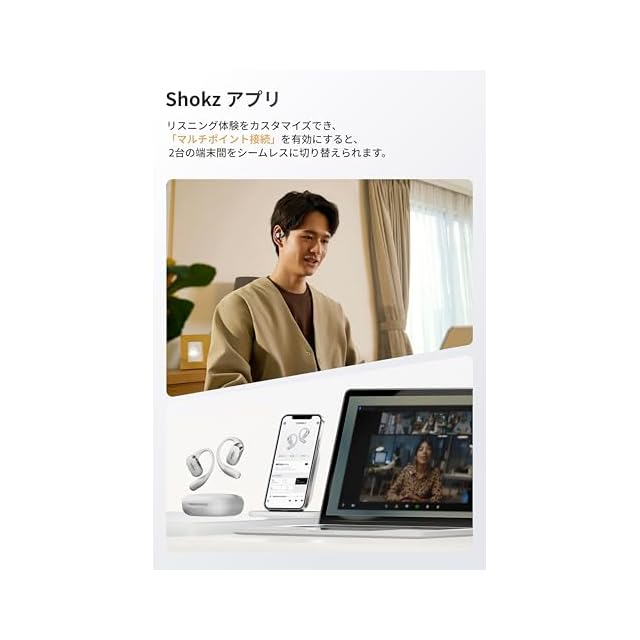 アプリでさまざまな機能を活用:Shokz専用アプリでは5つのプリセットEQと2つのカスタムモードでサウンドを自在に調整可能。タッチ操作の設置、イヤホン紛失時の検索、ファームウェア更新、プロンプト音量調整も簡単に行えます。次世代Bluetooth 5.4、マルチポイント接続、IP55防塵防水性能、多機能の物理ボタン、自動再生/停止機能などハイテックで便利な機能を搭載しており、通勤、ワークアウト、仕事、旅行などさまざまなシーンで活躍します。