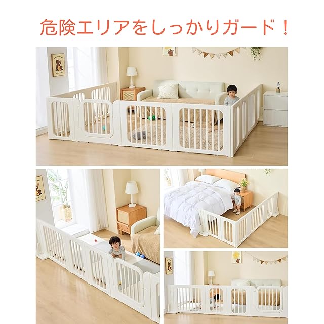 【優れた安全性】ベビーサークルとして、お子様を安全なエリアに閉じ込め、危険から守ります。ベビーフェンスとして、危険なエリアをブロックし、安心してお子様を監視できます。ベビーベッドとしても使用でき、お休み時にも安全を提供します。高品質の材料(High-Density Polyethylene)で作られているため、安全性に対する不安を取り除きます。
