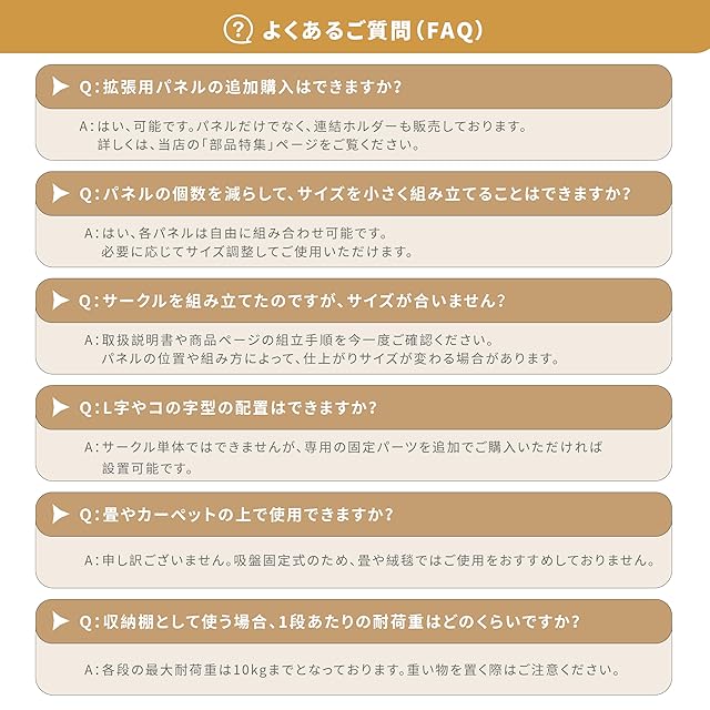 【Tips】もし、吸盤と床面の相性が合わず、うまく吸着できない場合は、下方の「おすすめコーナー」にある補助シールを購入することをお勧めします。一般的に、このシールを使用すれば、しっかりと固定でき、ゲートが安定して使用できるようになります。補助シールは簡単に取り付けられ、ベビーサークルの設置をより安心で確実なものにします。