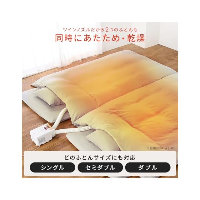 温風でふとんをあたため、湿気とカラリととばす「カラリエ」。 ツインノズルだから2つの布団も一気に同時あたため&乾燥!