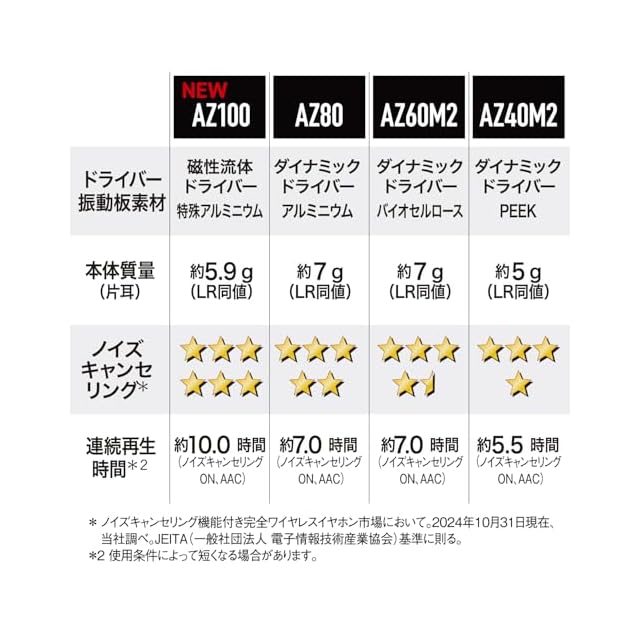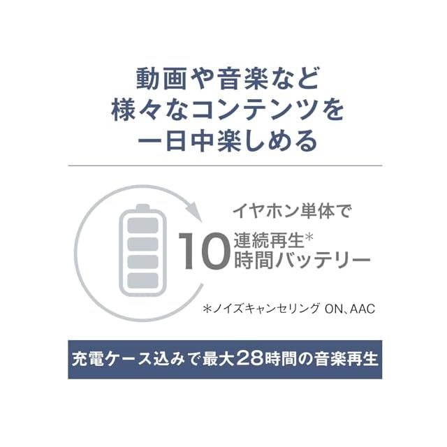 【業界最高クラス(※2)のノイズキャンセリング】従来モデルのノイズキャンセリング性能からノイズ除去力が進化。業界最高クラス*を実現しています。これまでの「デュアルハイブリッド ノイズキャンセリング」から「アダプティブ ノイズキャンセリング」へ。周囲の環境や一人ひとりの耳形状に合わせたノイズキャンセリングをお届けします。 2:ノイズキャンセリング機能付き完全ワイヤレスイヤホン市場において。2024年10月31日現在、当社調べ。JEITA(一般社団法人 電子情報技術産業協会)基準に則る。